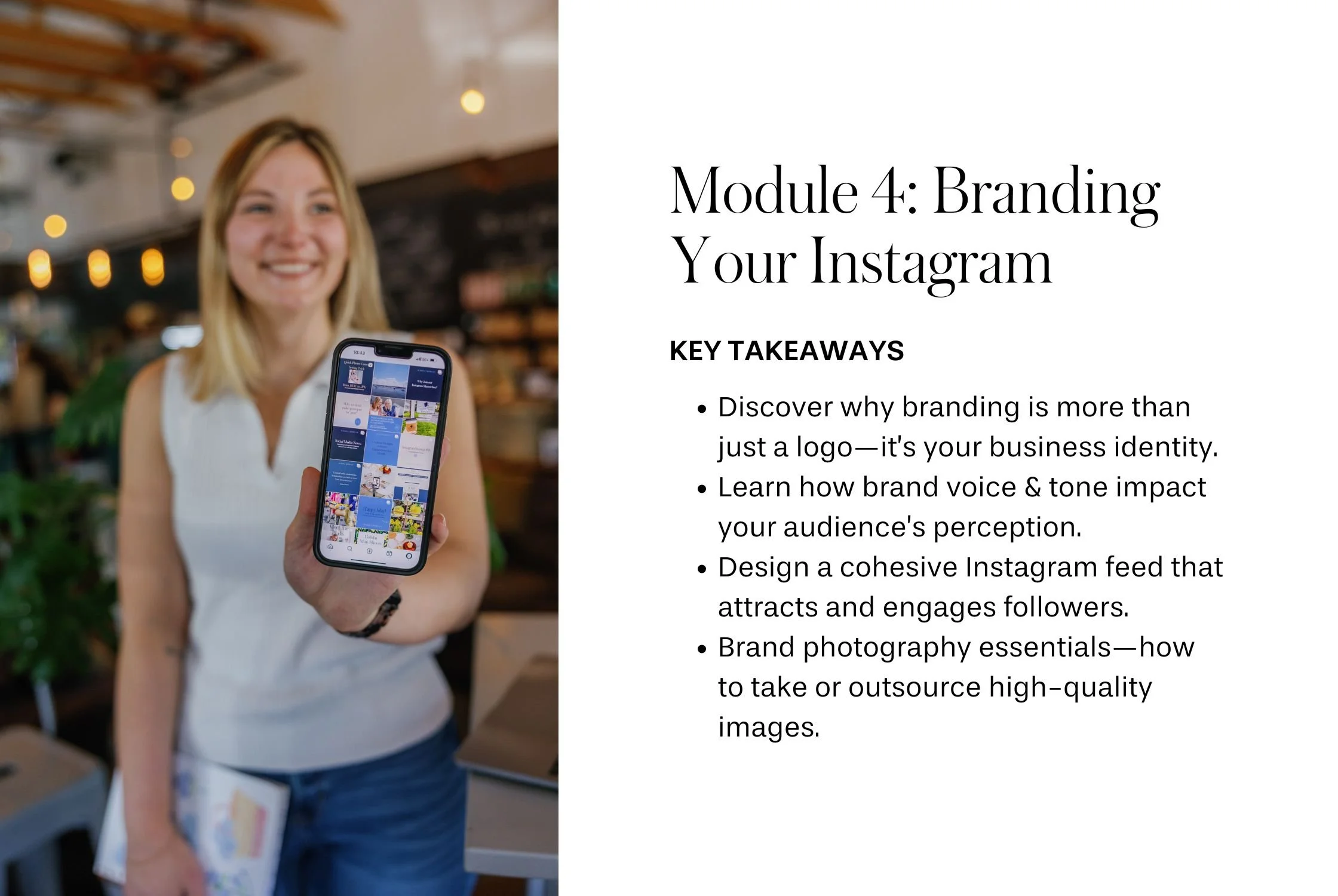 ✔️ Feel Confident Managing Your Business Instagram – You’ll go from overwhelmed to in control, knowing exactly how to grow and engage your audience.